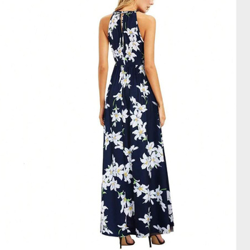 2025 Vintage verano Floral vestido de verano espalda abierta cuello Halter cinturón hasta la rodilla para playa Resort bodas Tropical Casual ODM Digital