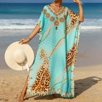 Preço de fábrica Verão Boho Kaftan Caftan Kimono Ladies África Imprimir Dubai Beach Cover Império Cintura Plus Size Casual para Mulheres