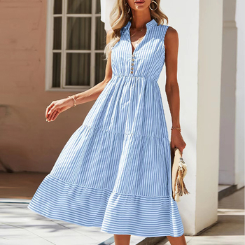 Elegante Verão Kaftan Vestido das mulheres Casual Sem Mangas com Detalhe Tassel Gravata Pescoço Modesto Festa Moda ODM Atacado