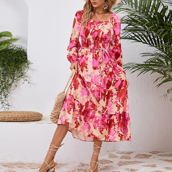 Mulheres Verão Casual Bohemian Maxi Vestido Elegante Floral Estampado Império Cintura Long Beach Swing Sundresses Plus Belt Loose 2XL XL